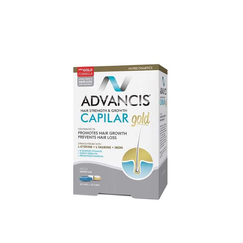 يُعدّ تطوير Advancis® Capilar Gold ثمرة أبحاث جديدة تُقدّم أساليب مبتكرة لعلاج تساقط الشعر. وقد أُضيفت إلى تركيبة Advancis® Capilar Gold ثلاثة معادن أساسية هي النحاس والسيلينيوم والحديد، بالإضافة إلى الأحماض الأمينية الأساسية L-taurine وL-cysteine، التي تُعزّز نمو الشعر وتمنع تساقطه، وذلك لزيادة فعاليته. وقد أثبتت هذه المكونات فوائدها عند تناولها كمكملات غذائية عن طريق الفم، فضلاً عن ارتباطها بتساقط الشعر في حالات نقص العناصر الغذائية.