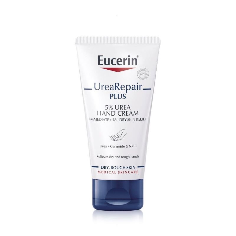 Eucerin Urea Repair PLUS 5% Urea Hand Cream gives dry, rough hands the daily care they need. It contains a unique combination of ingredients – Urea, Ceramide and other Natural Moisturizing Factors (NMFs) – which bind moisture in and repair skin’s natural protective barrier to prevent further moisture loss. The formula has been clinically and dermatologically proven to deliver both immediate relief and intense, long-lasting moisturization for dry, rough hands, even after repeated hand-washing. It strengthens skin’s natural barrier, making skin resilient to dryness for up to 48 hours.