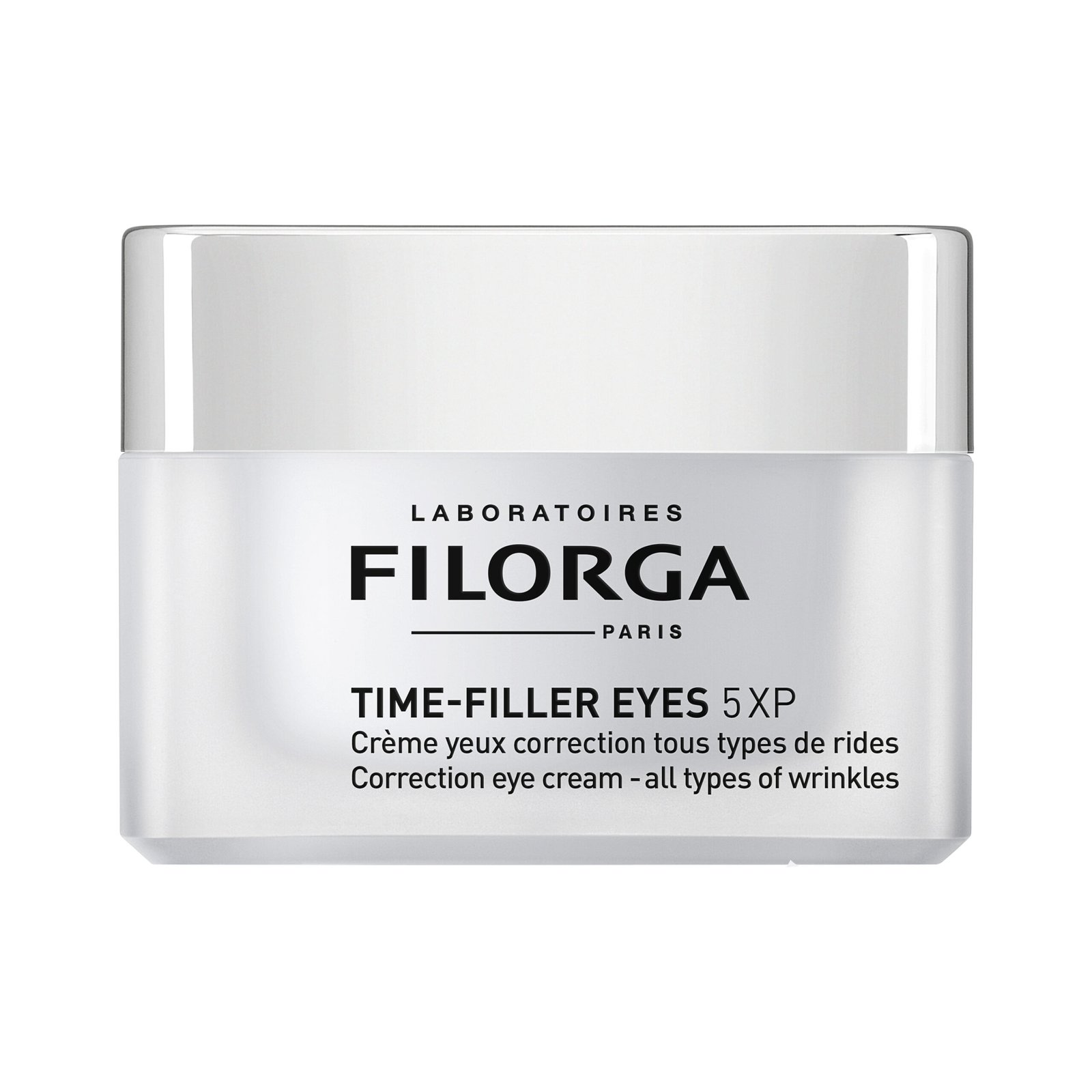 TIME FILLER EYES 5XP is a multi-correction anti-wrinkle cream that simultaneously targets 5 areas around the eyes: crow’s feet, under-eye wrinkles, frown lines, sagging eyelids, and dark circles.