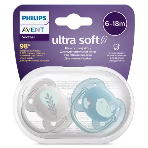 Philips Avent Ultra Soft Soother 0-6m 2 Pcs ( Gray-Blue )